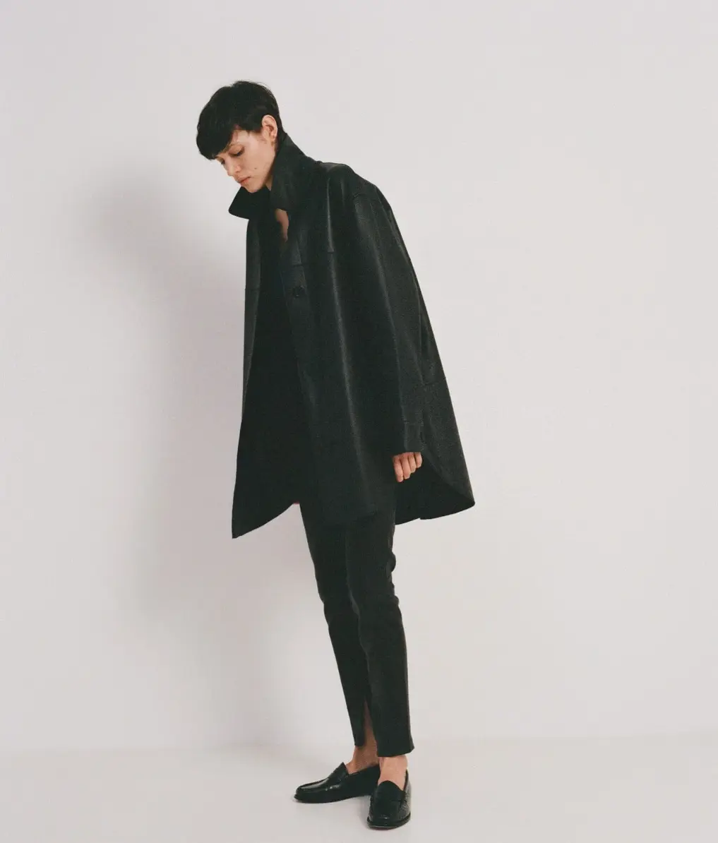 Однако, помимо верхней одежды, в коллекции также представлены укороченные юбки, юбки-карандаши, брюки-дудочки и спортивные брюки на резинке. Все эти модели также изготовлены из мягкой овечьей кожи, обеспечивая комфорт и стиль.